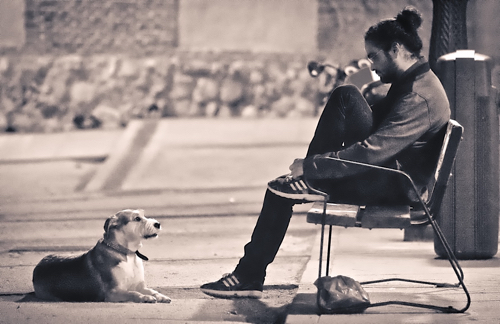 Photographer Jim Henderson is the Edge of Humanity Magazine contributor of this street photography. These images are from his project ‘Street Dogs & Their Owners‘. To see Jim’s gallery of photographs click on any image.