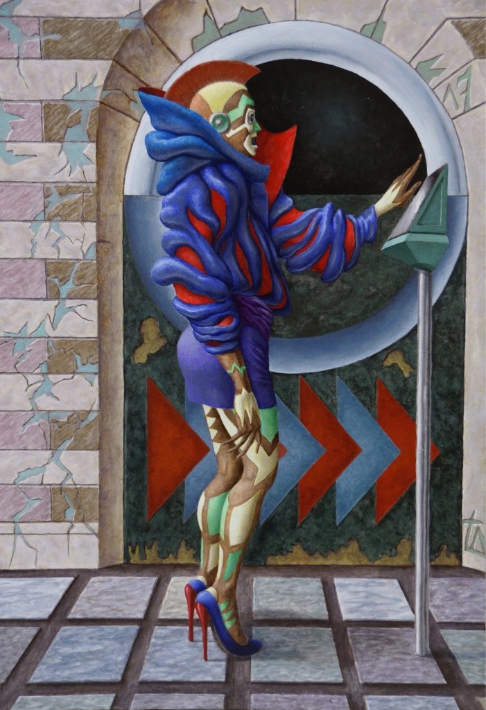 Expressionist in substance, because the expression transforms the painter’s inner turmoil into a rather corrosive existential and societal message, although a form of humor sometimes appears in the final work. In this we find affiliation with painters from German expressionism of the 1930s such as Otto Dix or Georges Grosz.